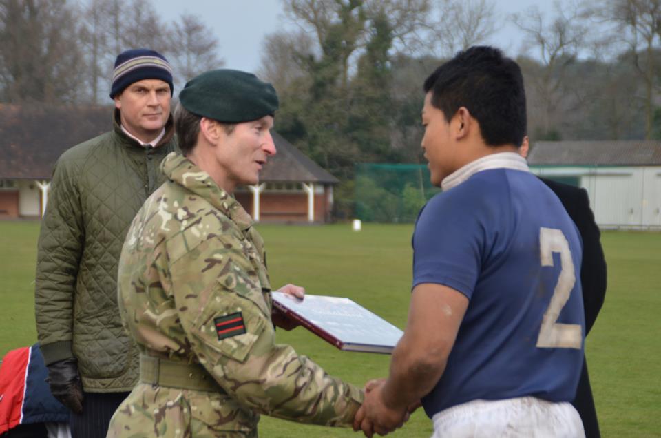 イギリス陸軍の将軍からの記念品をいただいている主将
