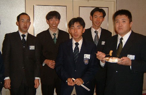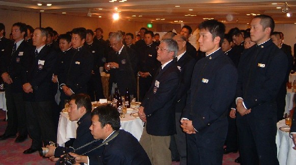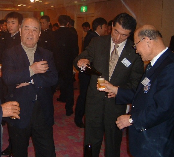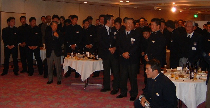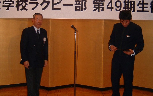 恒例の、山本先生からのOBバッジ贈呈時の各人の紹介に、大喝采