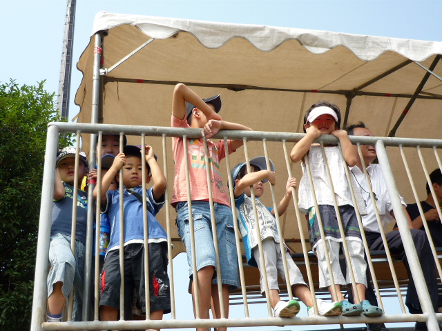 パパがんばれー、応援するOBのご子息