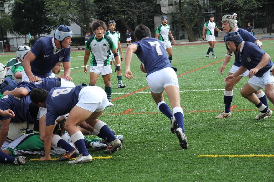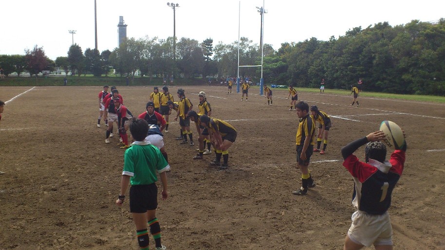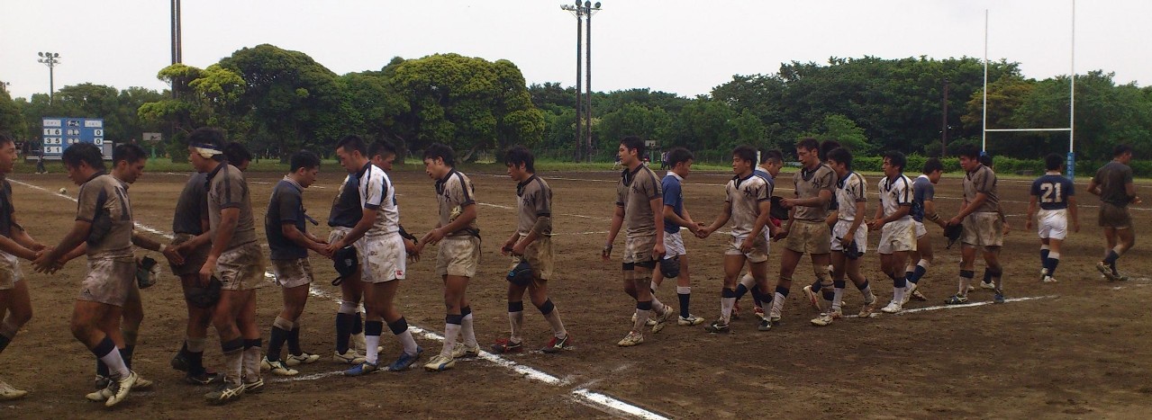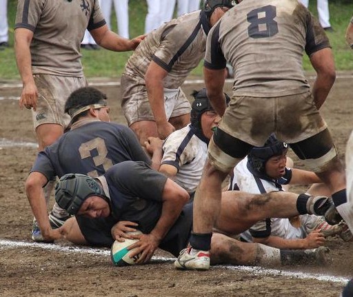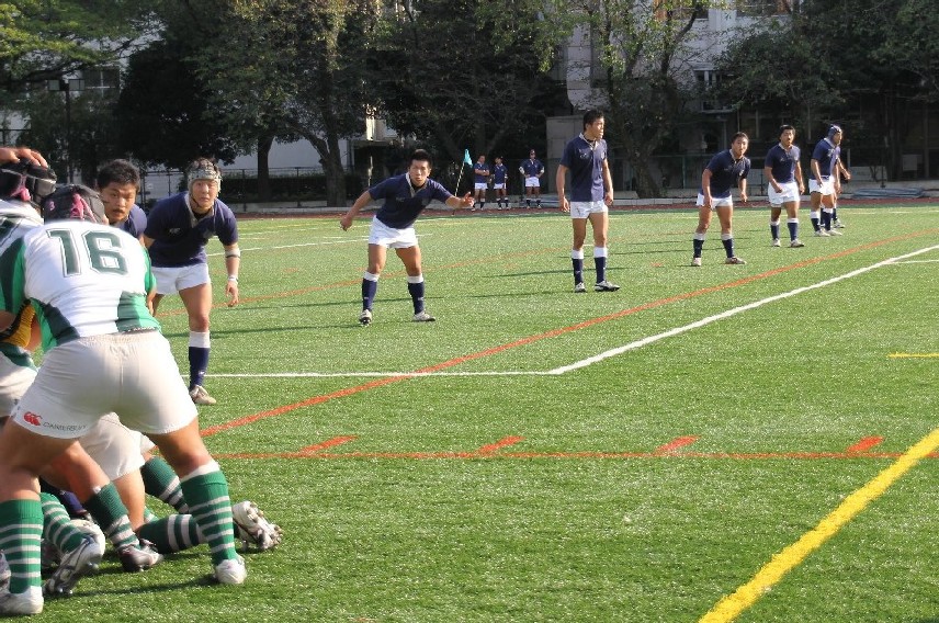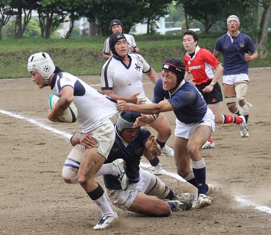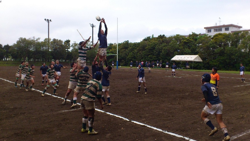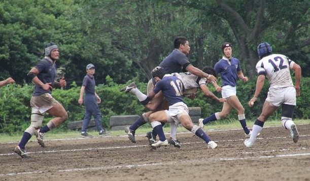 | 対ドンキホーテ・桃太郎戦 28対21負け 前半5分自陣10mでペナルティ敵ボール、FW持ち込みからBK展開され敵トライ 9分自陣左22mから敵BK展開敵CTBトライ 24分中央から自陣左裏にキックを蹴り込まれFBがさされてこぼれ球を押さえられ敵トライ 27分自陣ゴール際からFBが22m中央に蹴り込み敵クリーンキャッチ敵左展開WTBに振り切られ敵トライ 30分中央でペナルティ防大ボール、FW持ち込みからBK展開ちょん蹴りで裏をつき防大WTBトライ 後半5分敵陣ゴール前5mで防大ボールスクラム、押されヤンボール敵8がファンブルしたボールをインゴールでFLが押さえ防大トライ 30分ペナルティキックにより敵ゴール前5mで防大ボールラインアウト、モールからPRが持ち込み防大トライ |