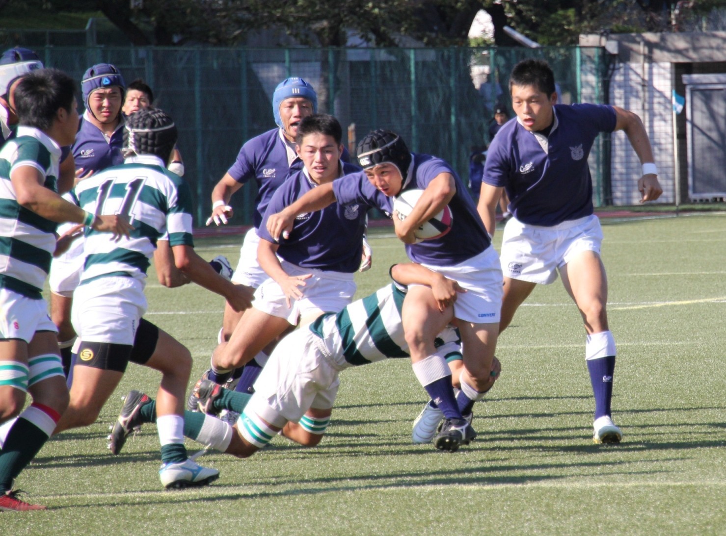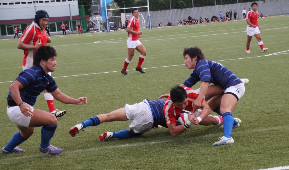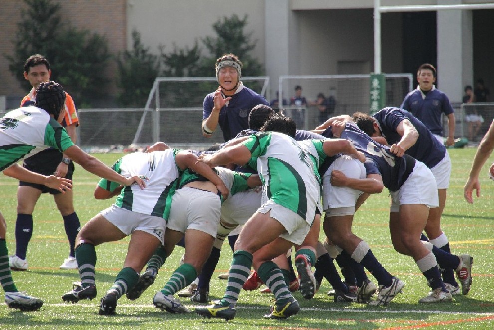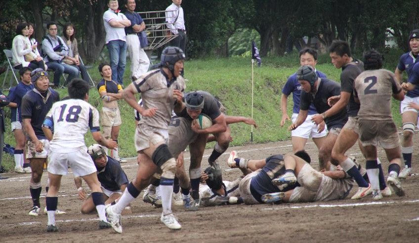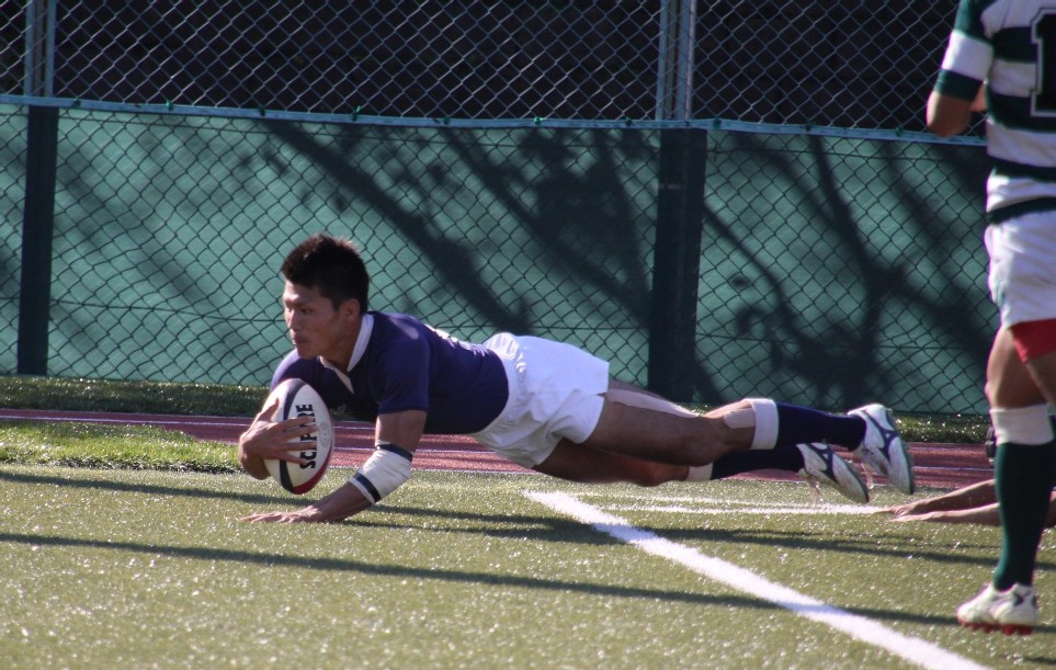 | 対ドンキホーテ・桃太郎戦 28対21負け 前半5分自陣10mでペナルティ敵ボール、FW持ち込みからBK展開され敵トライ 9分自陣左22mから敵BK展開敵CTBトライ 24分中央から自陣左裏にキックを蹴り込まれFBがさされてこぼれ球を押さえられ敵トライ 27分自陣ゴール際からFBが22m中央に蹴り込み敵クリーンキャッチ敵左展開WTBに振り切られ敵トライ 30分中央でペナルティ防大ボール、FW持ち込みからBK展開ちょん蹴りで裏をつき防大WTBトライ 後半5分敵陣ゴール前5mで防大ボールスクラム、押されヤンボール敵8がファンブルしたボールをインゴールでFLが押さえ防大トライ 30分ペナルティキックにより敵ゴール前5mで防大ボールラインアウト、モールからPRが持ち込み防大トライ |