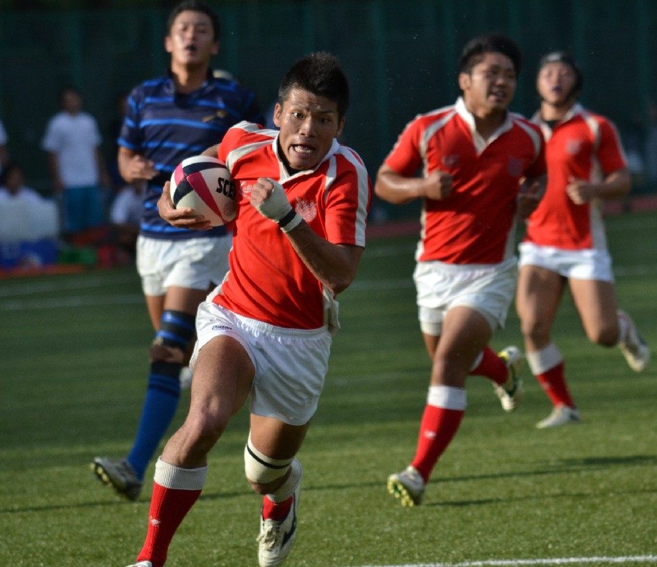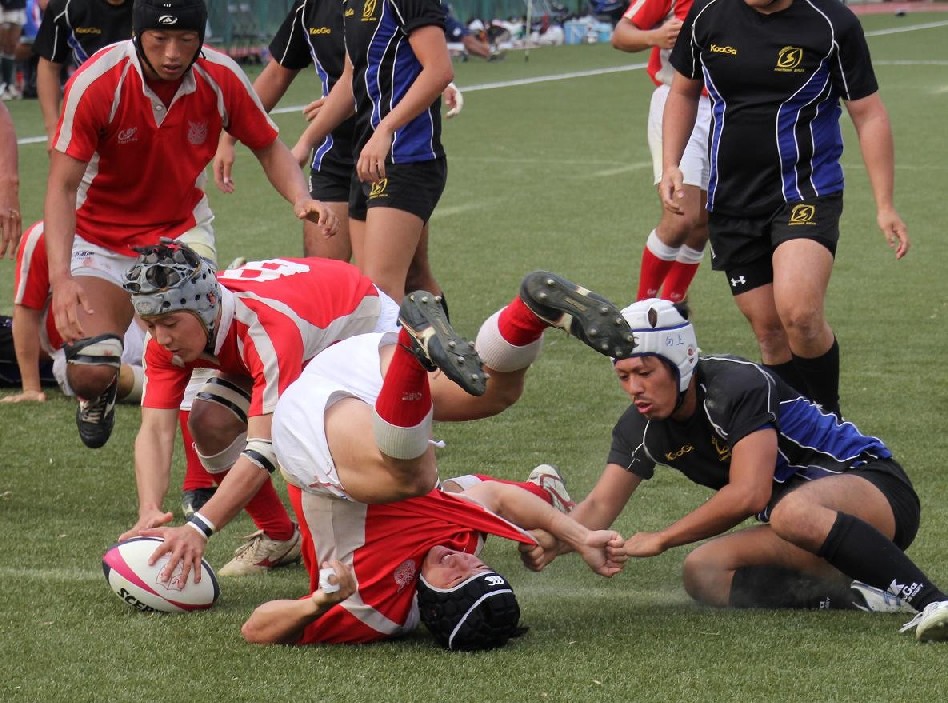 | 前半 2分防大 敵陣ゴール前右LOからモールT(7-0) 10分防大 敵陣ゴール前右LOからモール、左展開から縦繋ぎT(14-0) 20分防大 敵陣ゴール前右LOからモール、左展開から縦繋ぎT(21-0) 24分防大 キックオフ自陣PTサイドぬけ、敵陣ゴール前中央PTから縦繋ぎT(26-0) 29分防大 敵陣ゴール前右PTから左展開、縦繋ぎT(31-0) 39分防大 敵陣ゴール前中央スクラムからスクラムT(38-0) 後半 3分防大 敵陣ゴール前右LOからモールT(43-0) 9分駿河 自陣10m中央PTからPTサイド抜けT(43-7) 13分防大 敵陣10m左LO敵ボールをターンオーバー独走T(50-7) 15分防大 自陣10m中央PT敵ボールのハイパントをキャッチ、PTサイド抜けT(57-7) 17分防大 自陣10m右PTからハイパント、キャッチし、FWラッシュT(64-7) 38分防大 敵陣ゴール前中央スクラム、敵ボール、エイトのこぼれ球をピックしT(69-7) 39分防大 キックオフをキャッチし、PTサイド突破、T(74-7) |