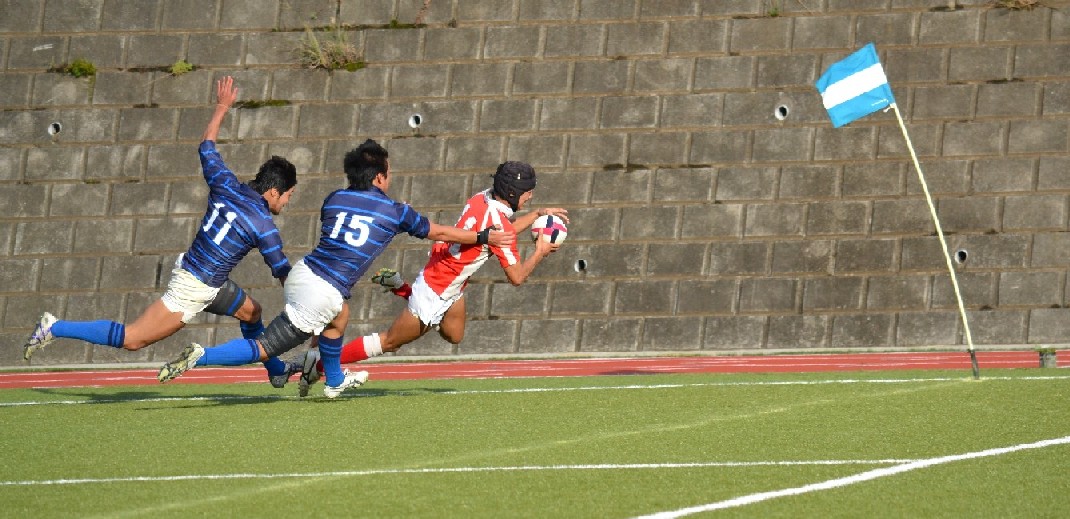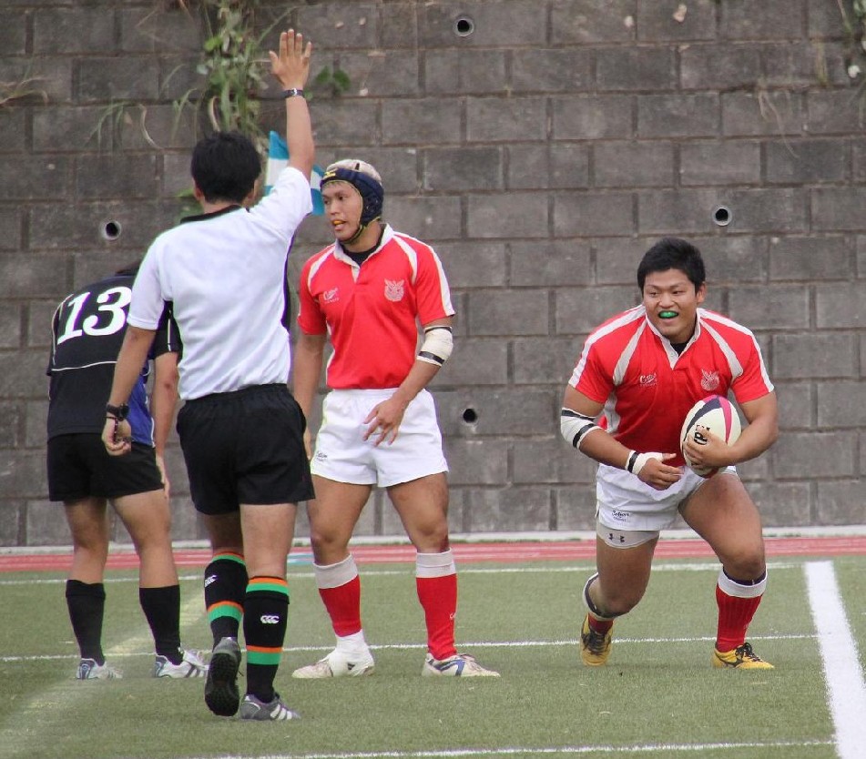 | 前半 2分ペナルティ後の防大ボールラインアウトからモールで持ち込み防大トライ(キック失敗) 14分ペナルティ後の防大ボールラインアウトからモールで持ち込み防大トライ(キック失敗) 21分自陣22m付近城西大ボールラインアウト後の1次ポイントから展開され城西大トライ(キック失敗) 40分自陣10m付近から防大BK展開ゲイン後FW連続攻撃防大トライ(キック成功) 後半 13分ペナルティ後の城西ボールラインアウト後のモールからサイドをつかれ城西大トライ(キック成功) 19分敵陣ゴール前でペナルティ獲得ショット選択成功 21分中央から防大展開ウィングと8でつなぎ防大トライ(キック失敗) 34分防大ボールセンタースクラムからウィング独走防大トライ(キック失敗) 今シーズン4勝3敗 |