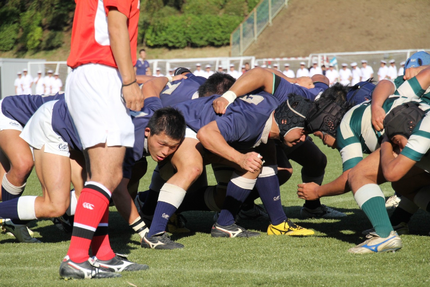 | 前半 2分ペナルティ後の自陣22m国士舘ラインアウトから8が突破国士舘トライ(キック失敗) 17分自陣10mから国士舘連続展開国士舘トライ(キック失敗) 後半 9分ペナルティ後の自陣22m国士舘ラインアウトから展開ゴール際からFWにサイドを突かれ国士舘トライ(キック成功) 14分ペナルティ後の自陣22m国士舘ラインアウトから展開ハーフが持ち出し国士舘トライ(キック成功) 27分キックを蹴り込んだ後そのまま持ち込んで突破されゴール際でハイタックルで国士舘ペナルティトライ(キック成功) 31分国士舘ラインアウトから展開され8が突破独走され国士舘トライ(キック成功) 35分敵陣22mで防大展開後キック失敗からターンオーバーされ独走国士舘トライ(キック失敗) 来場応援者 |