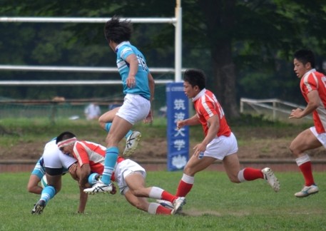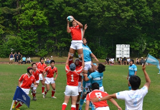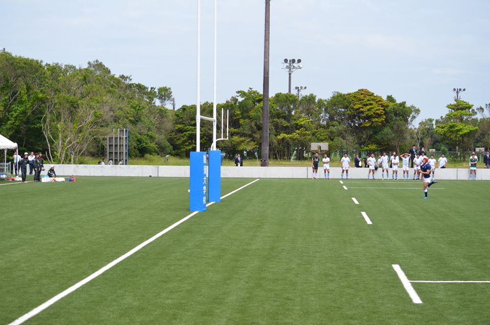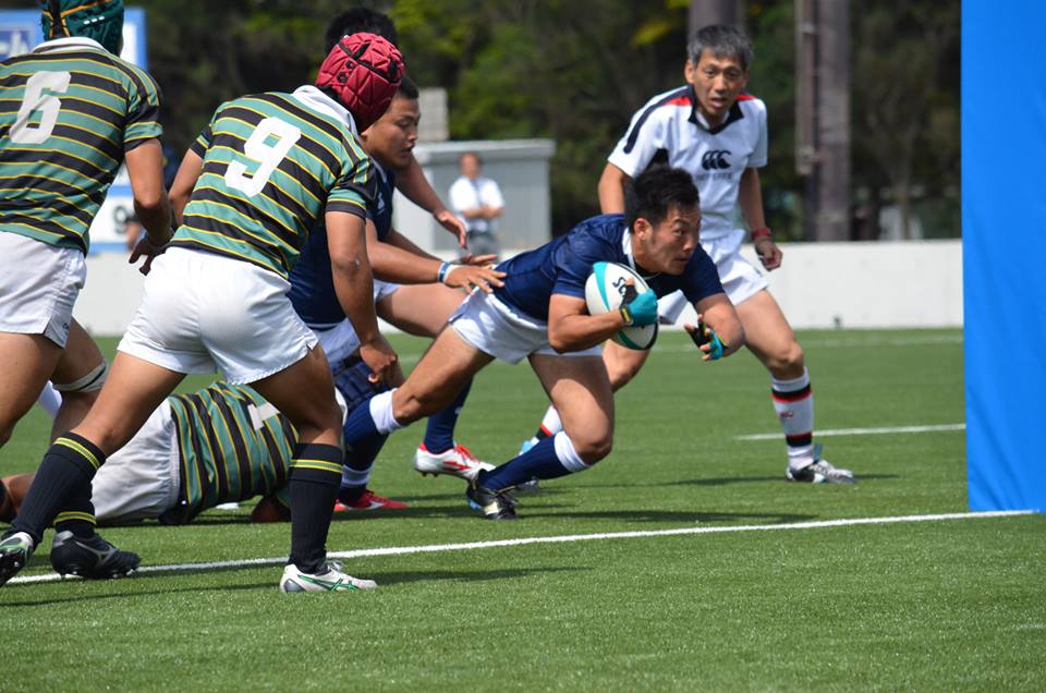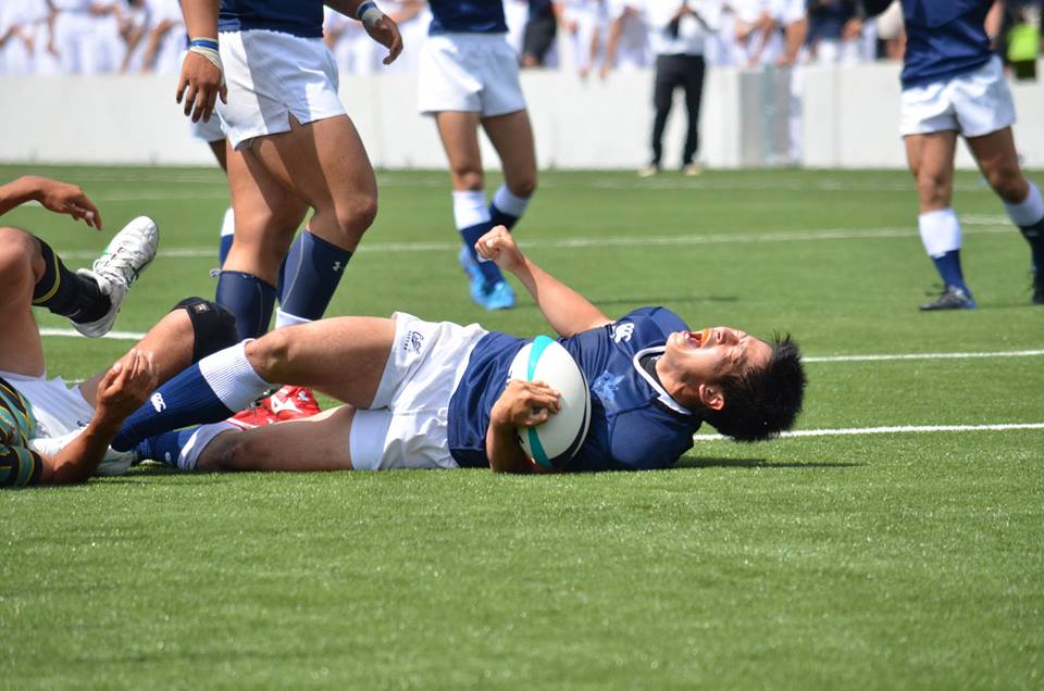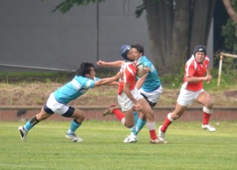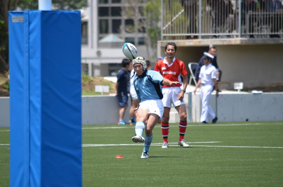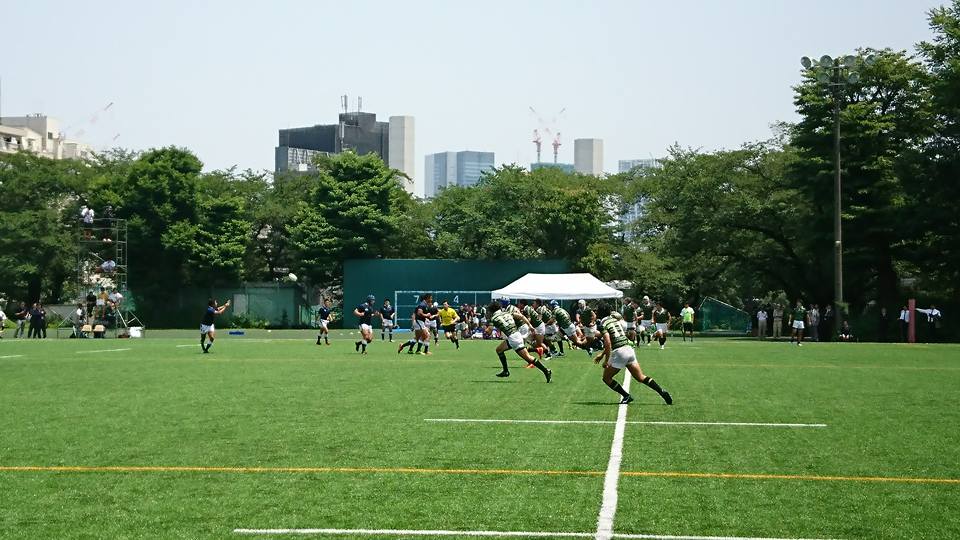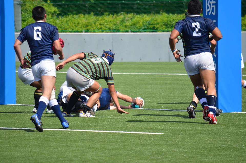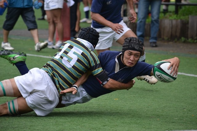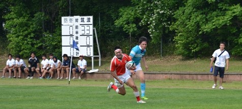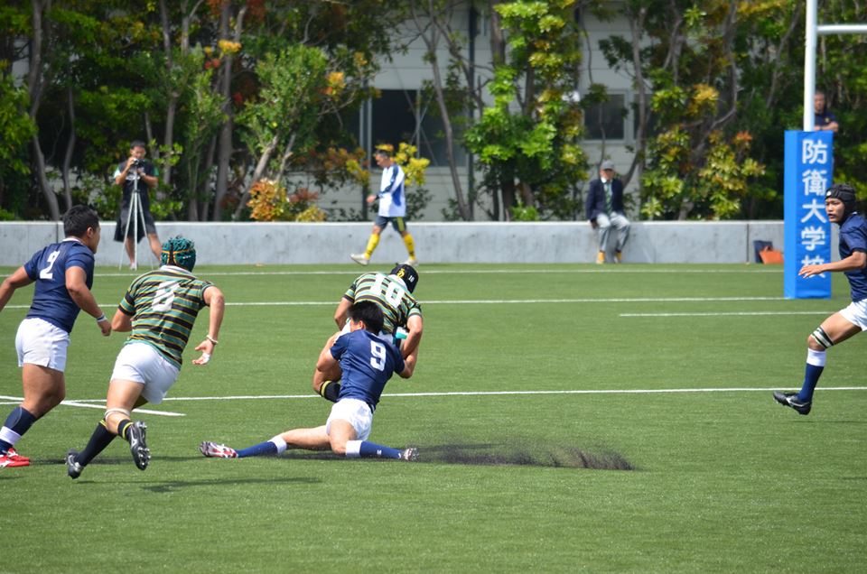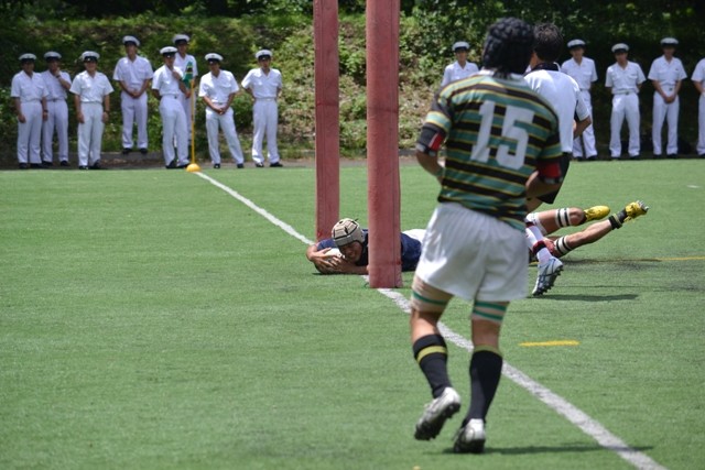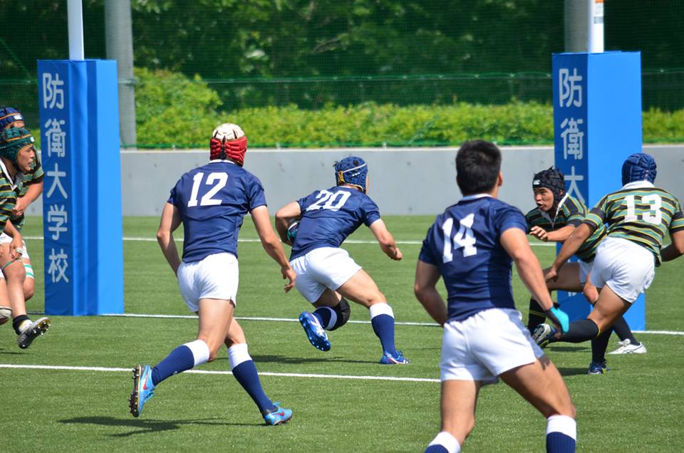 18分、防衛大が東大ゴール前30mの位置からBK左展開、No10中條からNo13松井の裏でNo14宮木がもらい、No15井上No11那須と繋いでトライ。(25−7)