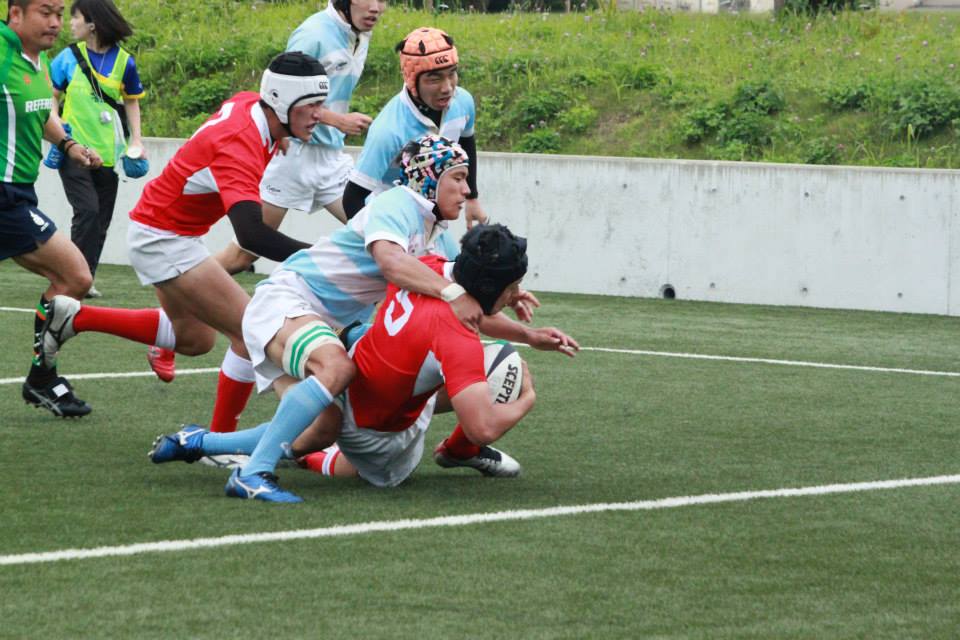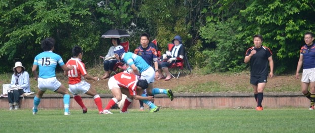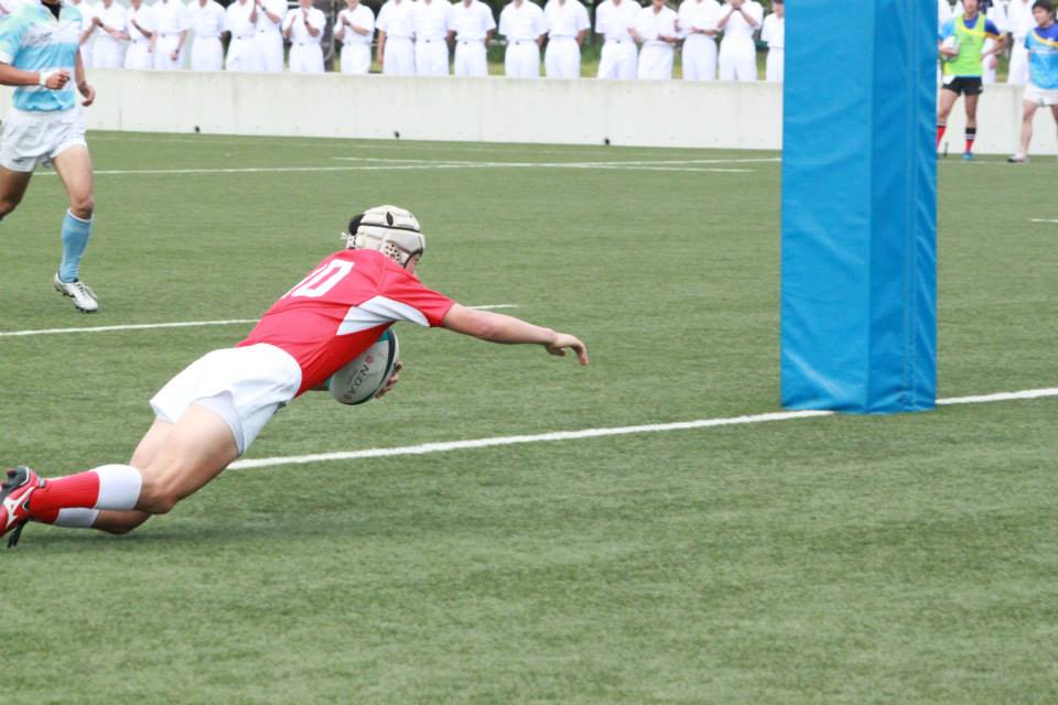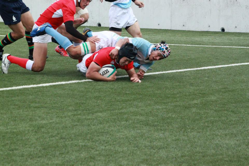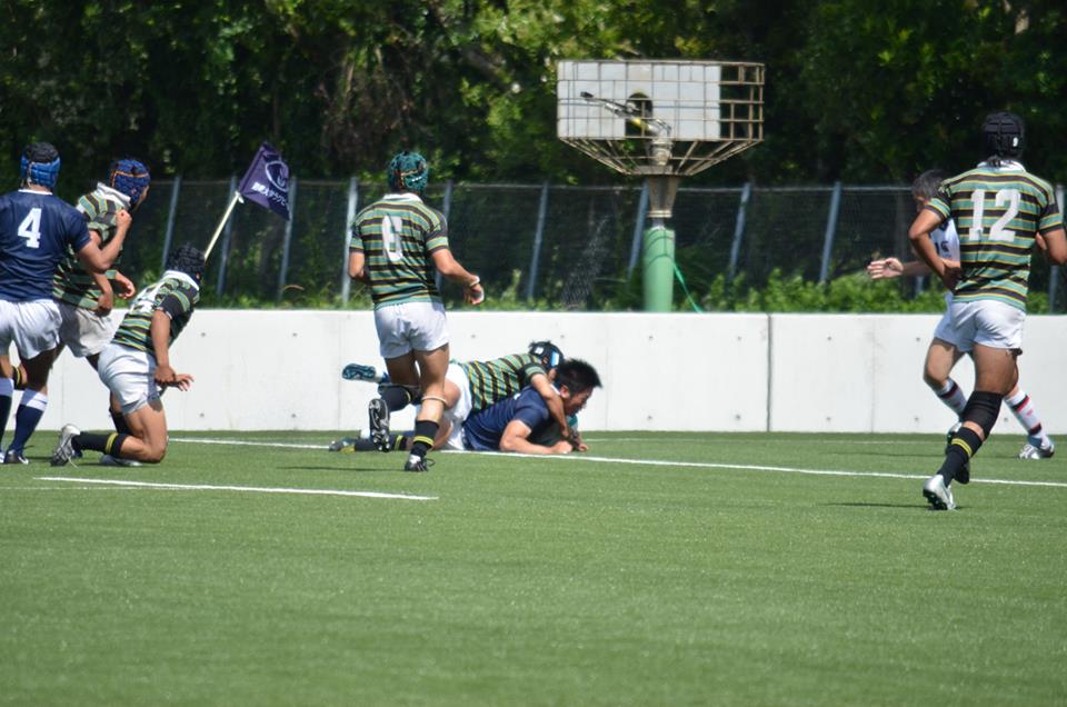 前半30分 G前でFW→FW→FB→CTB(13)とつなぎ、念願のトライ。コンバージョンキックは外れて5−0。