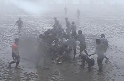 後半 防大風下でのKO 8分、筑波大にラインアウトからモールで押し込まれ、得意の形でトライを奪われます。(17−5) 12分、筑波大がラックからBK展開したところを、No14宮木がロングパスをインターセプト、そのまま独走30mのトライでお返しします。(22−5) 15分、筑波大はBK展開し、No12の個人技で抜け、外にロングパス、No14がトライして点差を詰めます。(22−10) ゲームの流れは徐々に筑波大ペースになり始めます・・・・ 25分、筑波大はラックからのサイド攻撃により防大ゴールを執拗に攻め、トライを奪います。(22−15) 29分、筑波大は防大ゴール22m中央からBKを左展開して、トライ。コンバージョンキックも成功し、ついに追いつかれます。(22−22) その後も、筑波大の攻撃は続きますが、防大は激しいタックルにより猛攻を止め、同点でノーサイドを迎えました。