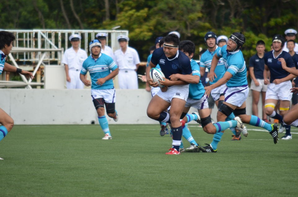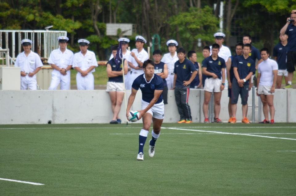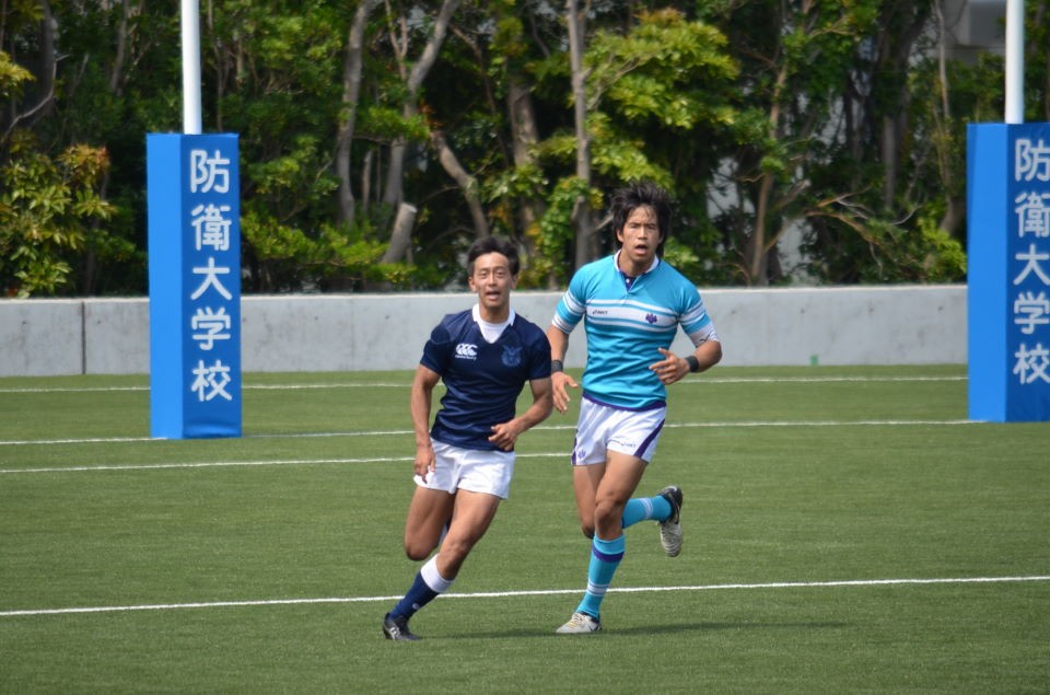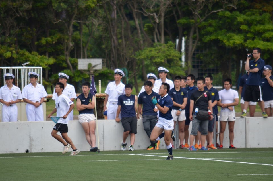 前半から防大が優位に試合を進めて先制トライを挙げるなど前半を14?7(?)で折り返しました。