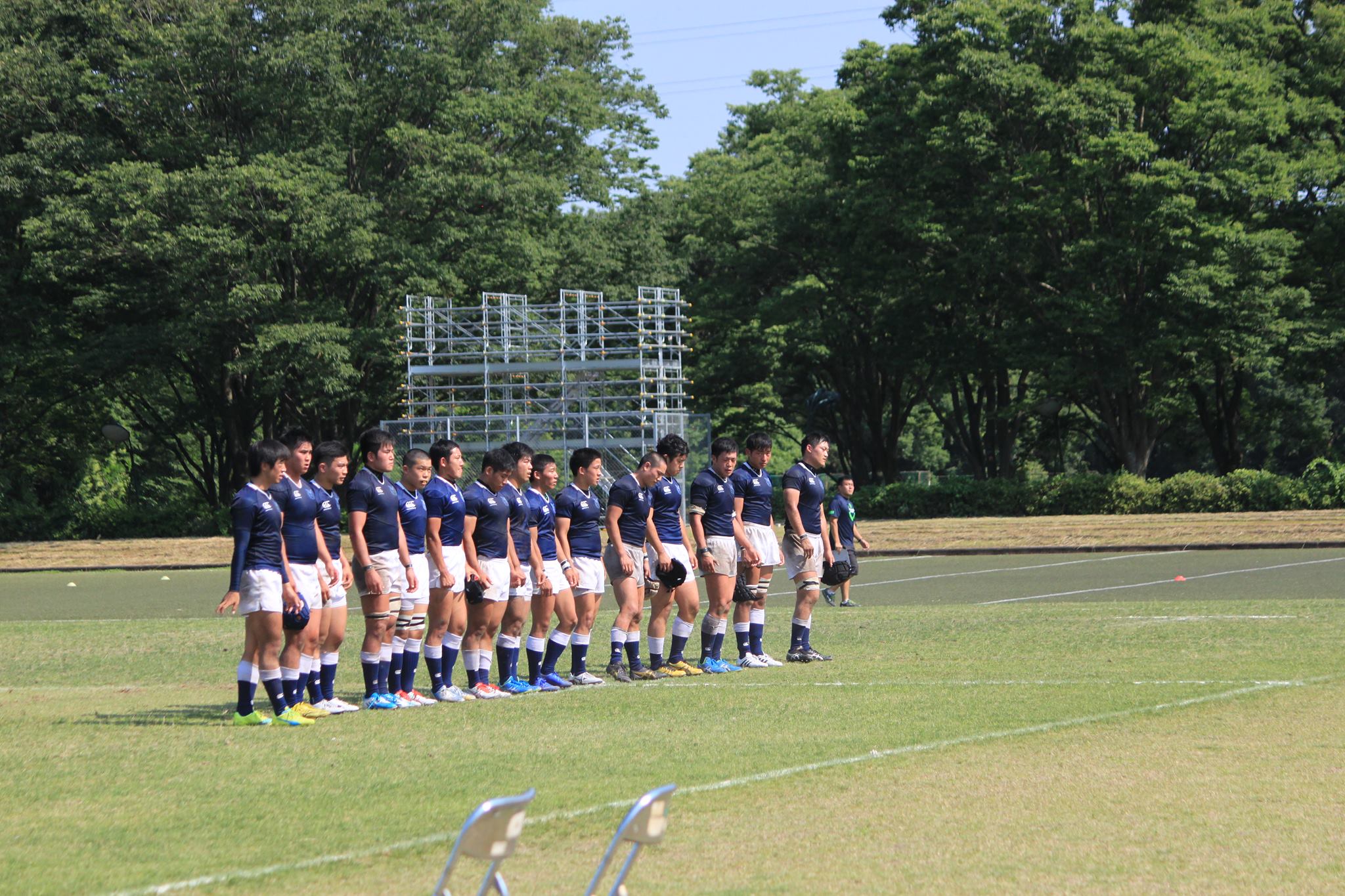 前半は防大らしいプレー(低く激しいタックル、高いフィットネス)で相手を圧倒することができましたが、後半は風をうまく利用してプレイすることが出来ませんでした。 課題も残る試合でしたが、自分たちのプレイをすることも出来、学生たちの自信となる非常に有意義な試合でした。