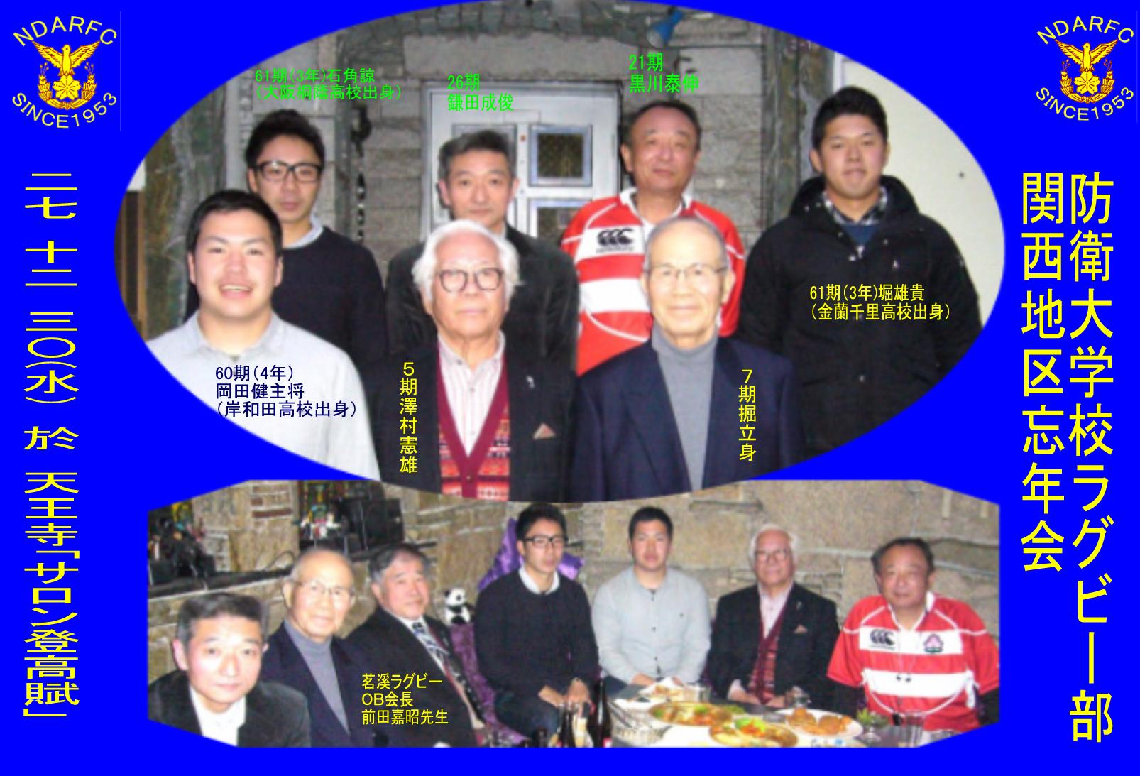 防大ラグビー部浪花会 27.12.30 於天王寺「サロン登高賦」 参加者8名 |