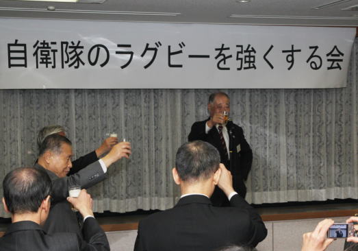 | 「自衛隊のラグビーを強くする会」も防衛大臣である中谷会長を中心にONE-FOR-ALL ALL-FOR-ONEのラグビー精神を想い起し、会員一人ひとりの力で、皆の力で現役のラガーメンを支援し、"自衛隊のラグビーを強くする会"を盛り上げましょう。 全国各地において、ラグビーだけでなく地域活動に参加されている会員皆様には、自衛隊のラグビーが更に強く、活発になるよう各駐屯地、基地等のラグビー部への継続支援をお願いします。また、今年度の全自衛隊ラグビー大会に参加チームが増えるよう、激励のほど重ねてお願い申し上げます。 |